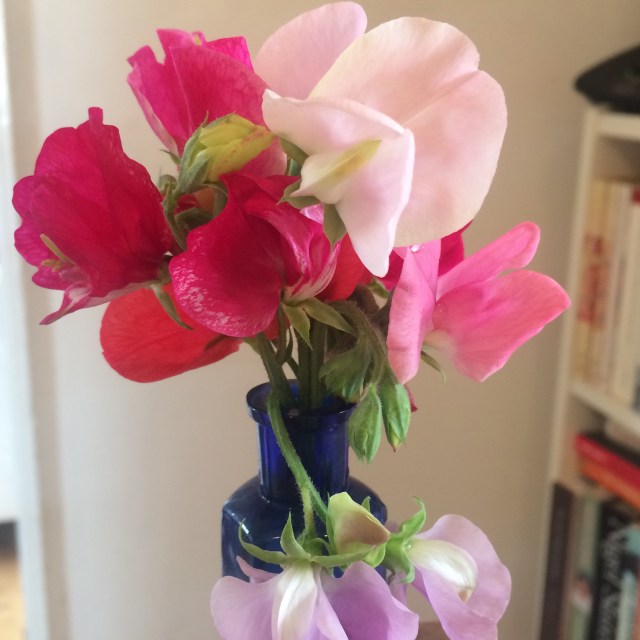 I worked from home on Tuesday so the watering was more leisurely and I picked sweetpeas and raspberries for breakfast. It never gets old.