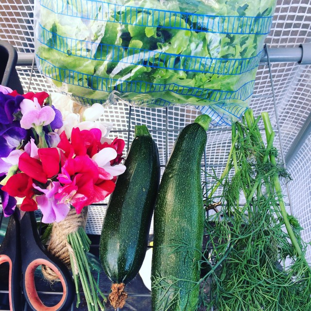 I skipped watering on Wednesday morning and went in the evening so I could also pick dinner (and more sweet peas!), picking your dinner never gets old.