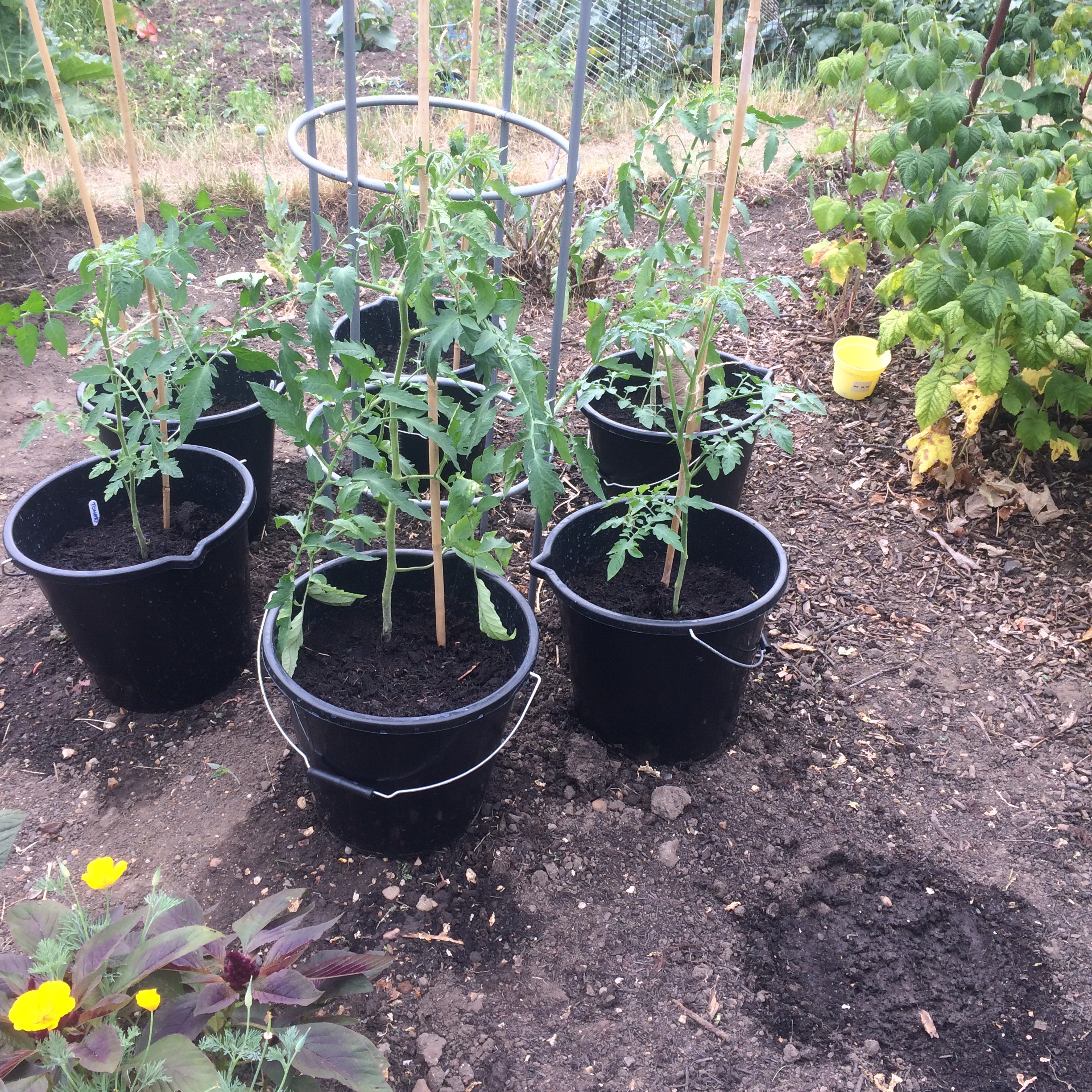 pull up the peas and relocate the bucket tomatoes- Sow some lettuce in the leek beds