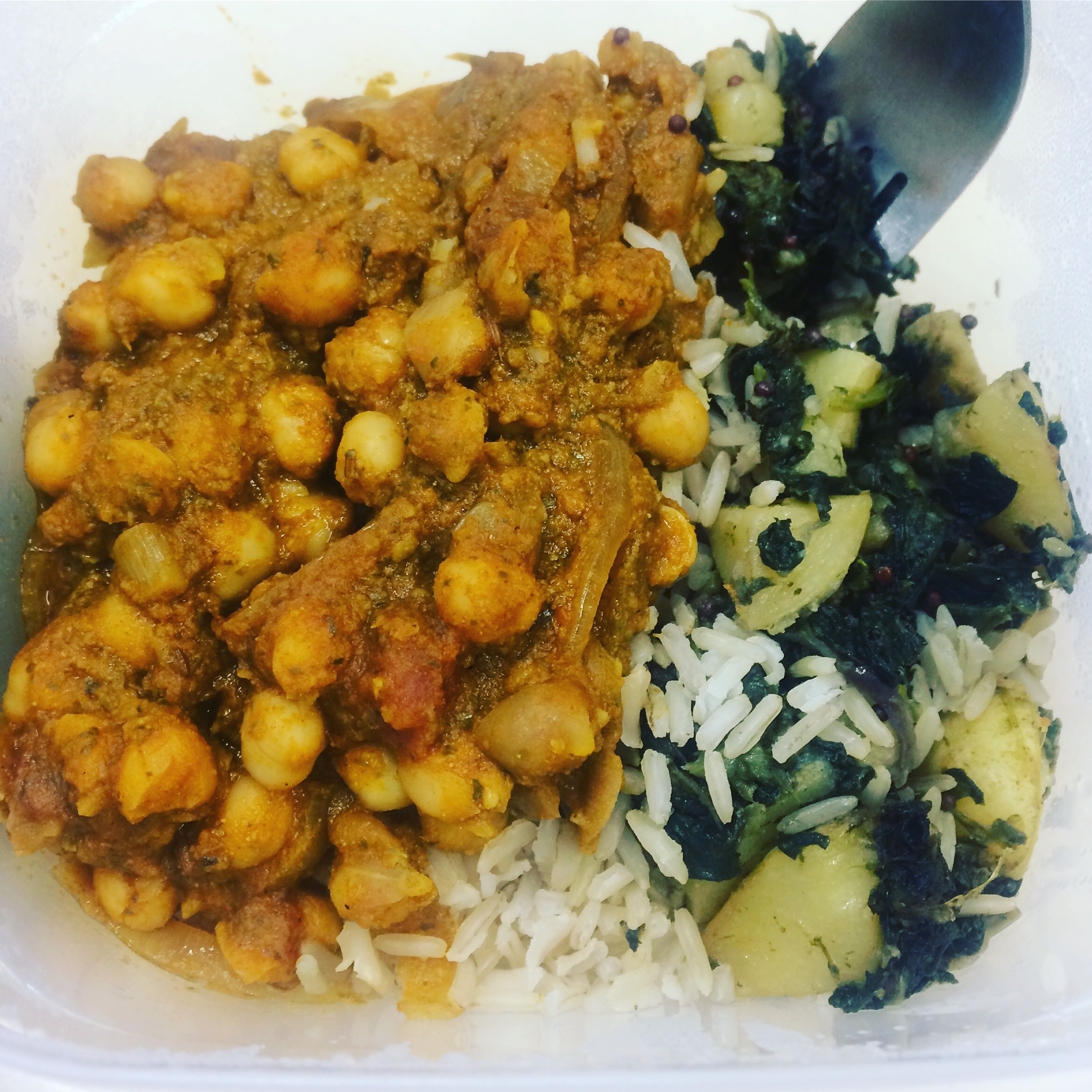 I did a lot of cooking on Sunday to get me through the week. This is saag aloo, chana masala and rice. I also portioned some of it up in foil containers and froze them for an instant ready meal on the days when I can’t be bothered to cook. I ate it with a salad.