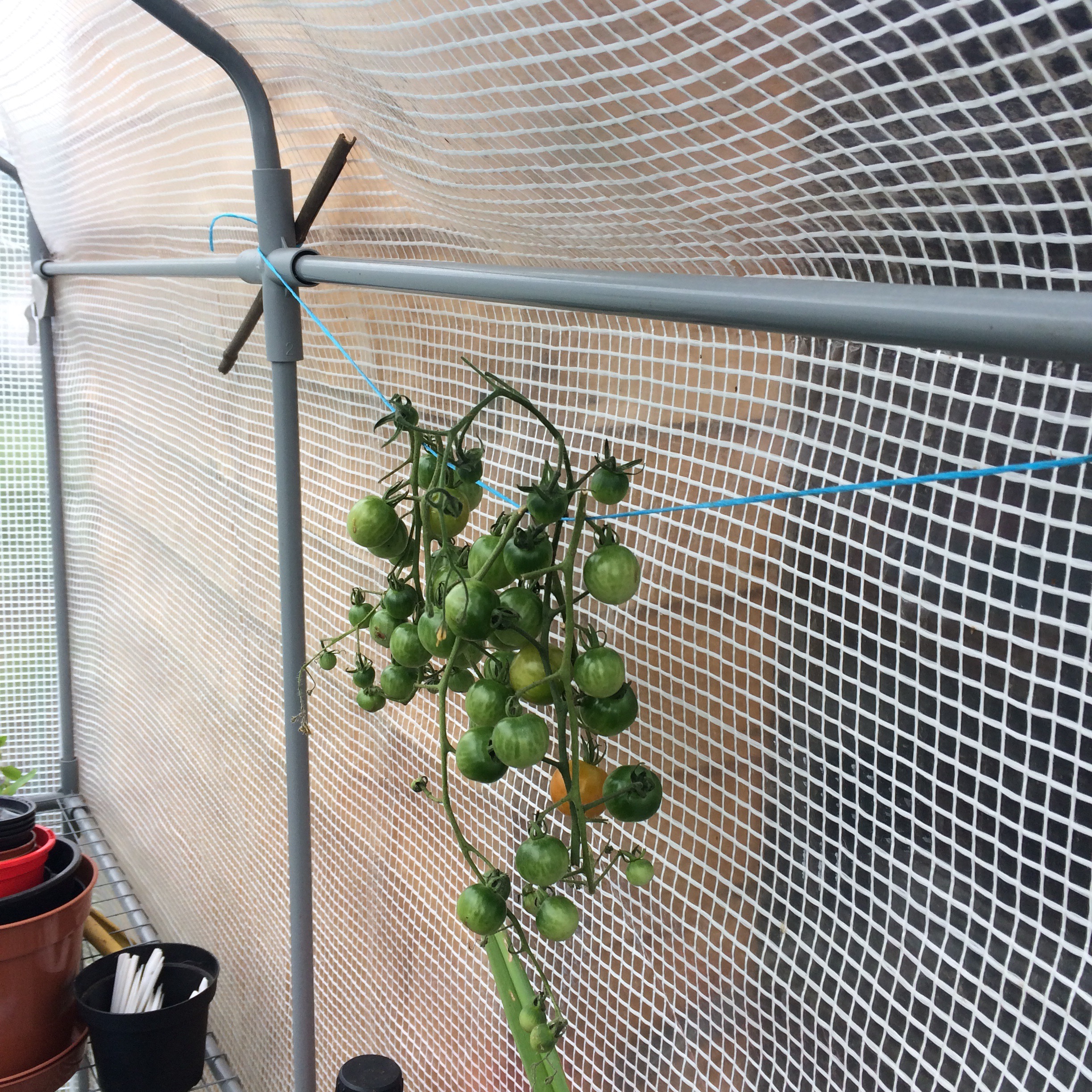 I had a tiny re-arrange of the greenhouse too and found a place for ripening some tomatoes, they were dragging on the ground so had to be cut off.