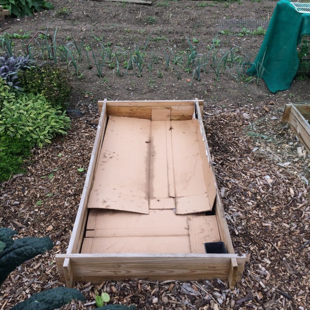 Once that was done, we manured the bed and covered it with cardboard to give the worms something to do.