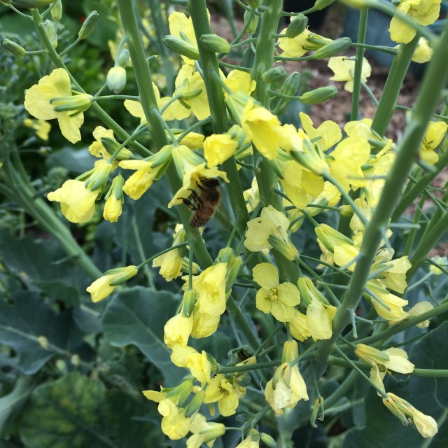I got some broccoli spears from the side shoots but it’s still flowering away and is food for the bees at least! There are two big kale plants in there and when the broccoli comes up, I’ll sow mustard greens.