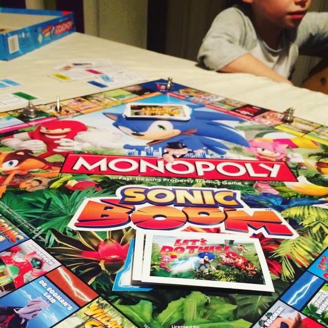 We hung out and chatted and when the baby went to bed (ok was taken to bed) we played monopoly (Sonic Monopoly of course)