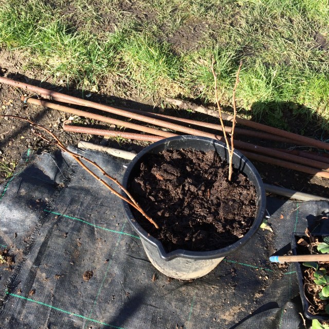 I was away last weekend so there wasn’t a lot of allotmenting happening. On Friday morning, I went up to refill the bird feeders and collect the raspberry canes I’d dug up for my sister in law. I also saw a couple of people and had a chat and found out that my allotment neighbour was responsible for the mystery roll of edging left on my plot!