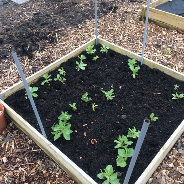 The plot is in pretty much the same state it was in last week, minus the snow.The broad beans look ok, although there are some gaps! As we haven’t planted anything else out and the cavolo nero and chard aren’t up to much, it’s all pretty much as it was.