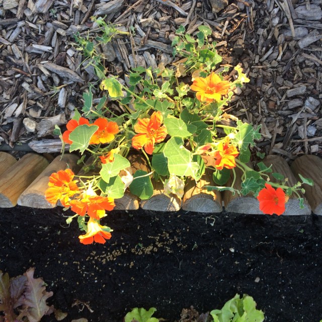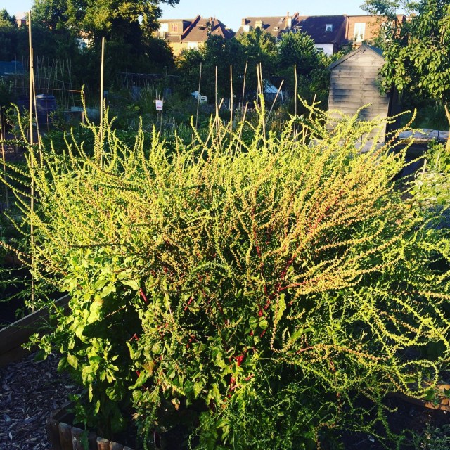 This year on the plot is really the year that Ma and I have been more relaxed about self seeding plants, the poppies have always done their thing but the amaranth is everywhere this year. And then there are the nasturtiums, I didn’t sow any this year but some have come up, which I don’t mind and this one is flowering away despite the pigeons devouring the leaves.