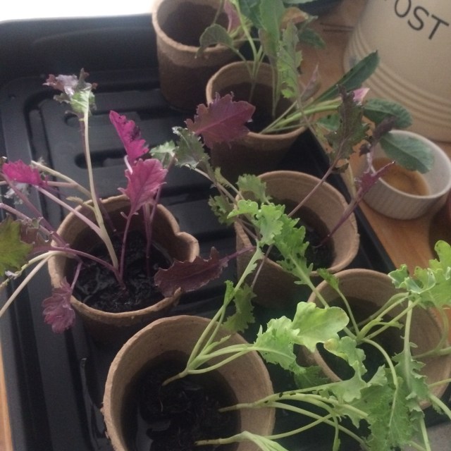 I potted up the 21 kale plants that arrived on Thursday and have already given four away but that still leaves 17 plants to find room or homes for.