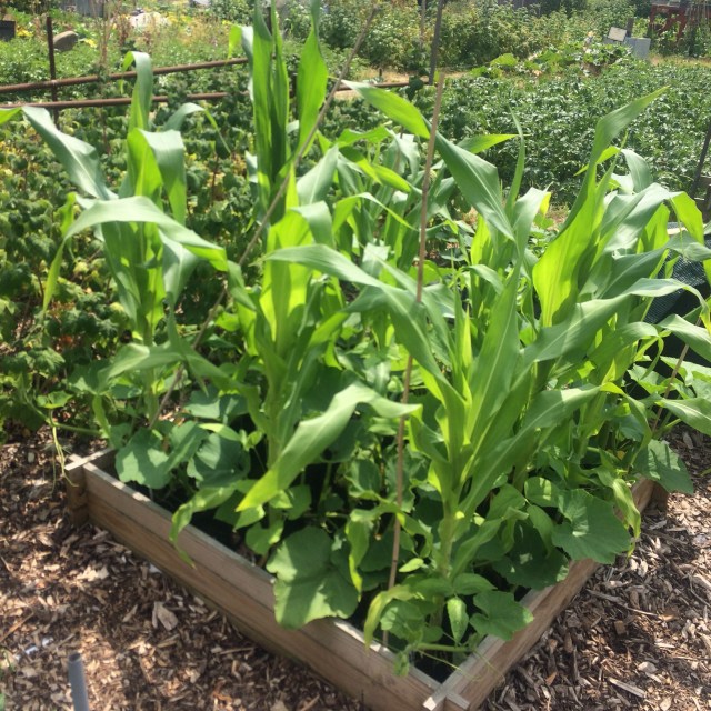 The three sisters bed is going nuts but if we do it again, it will need to be in one of the bigger beds. In my typical worry wart fashion, I’m worried that the corn isn’t doing as well and I have no tassles, but having done a quick calculation in my head, I’m going to worry about that after August. Corn needs 80 to 95 days and I planted this on 19 May. So I have some time to go..