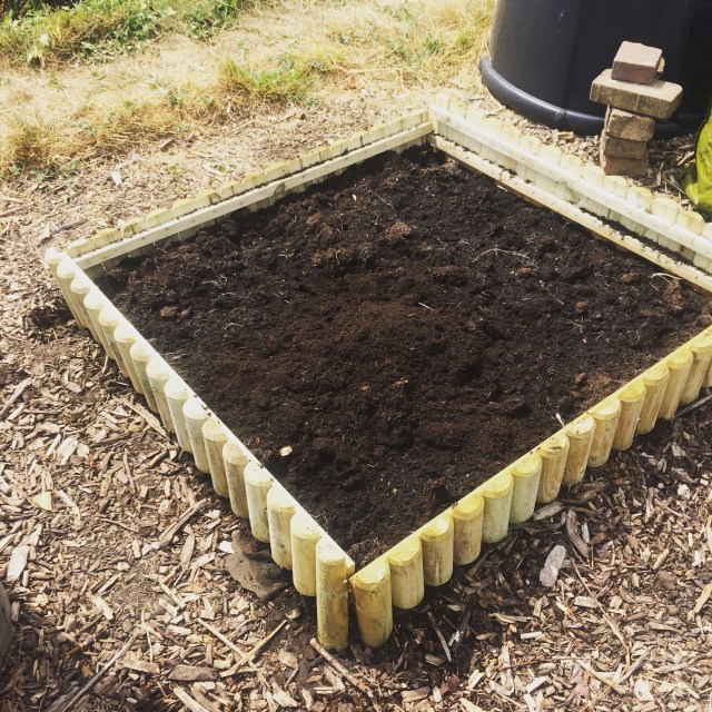 We started a new bed where the strawberries were. The ground was rock hard so they may require some hammering in when it’s a bit wetter. It was half filled with the compost from the potato bags. I’ll fill up some more next week and then some of the kale is going there, the rest of it is going to replace the French beans when they are done and maybe in pots until much later in the year when some of the other beds are finished.