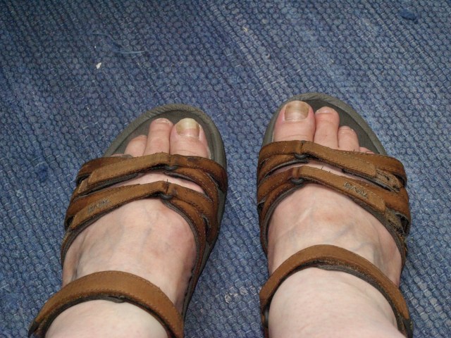 Enter my Tevas. If you have elegant feet (it is possible!) these shoes probably look good on you, but I am not a person whose feet look good in anything but these are the most comfortable pair of sandals I own and they are good for a three hour walk with Sarah and Fred!