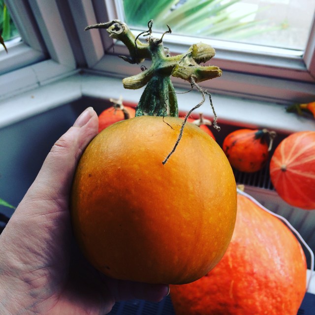 This weekend was the Ealing Half, so I was handing out water and left Ma on the plot with a packed breakfast, a flask of coffee and a worklist. She was amazing. We called time on all the summer and took the remaining winter squash in (including Oli’s tiny pumpkin – we’ll do better next year!). Ma also cut down all the tomatoes and I have tons of tomatoes ripening at home, time to make some chutney, I think!
