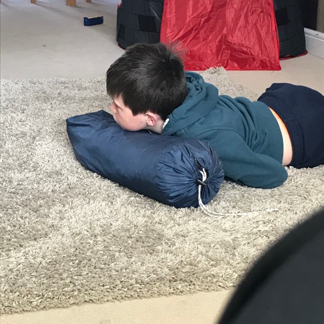 I had a whole weekend out of London, looking after the nephews on Saturday and then for Mother’s Day lunch on Sunday, the boys are mostly delightful, but they do have their moments! We brought an old tent with us and that was entertaining for the time it took to put up, with J keener on it than O. But O was very happy playing UNO later on and he won three games…