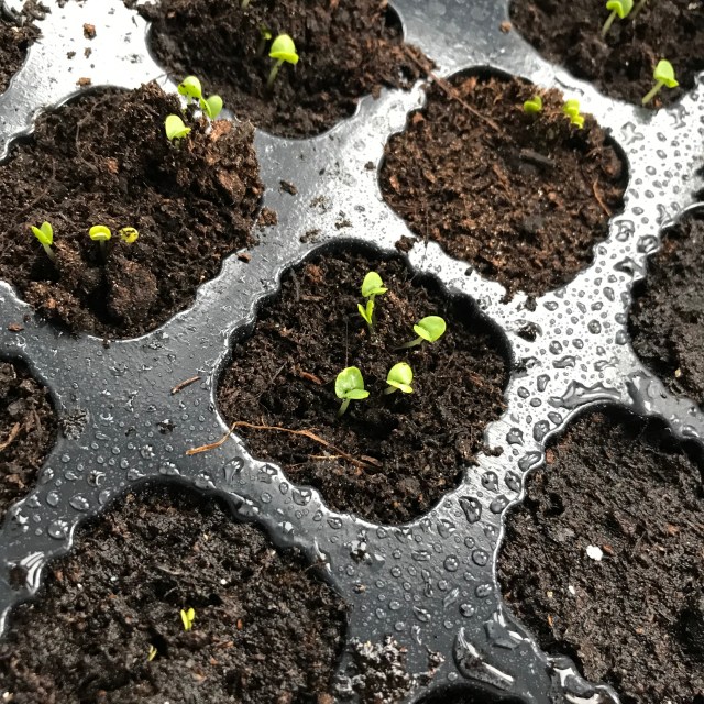 We love basil and companion plant it with tomatoes. My basil sowing has never been 100% successful. The first year 100% of the seeds I sowed died, the second about 75% of them did. I topped up by buying supermarket basil and putting those out, which was fine. This year, we’ll see if I can at least get to a 50% survival rate!