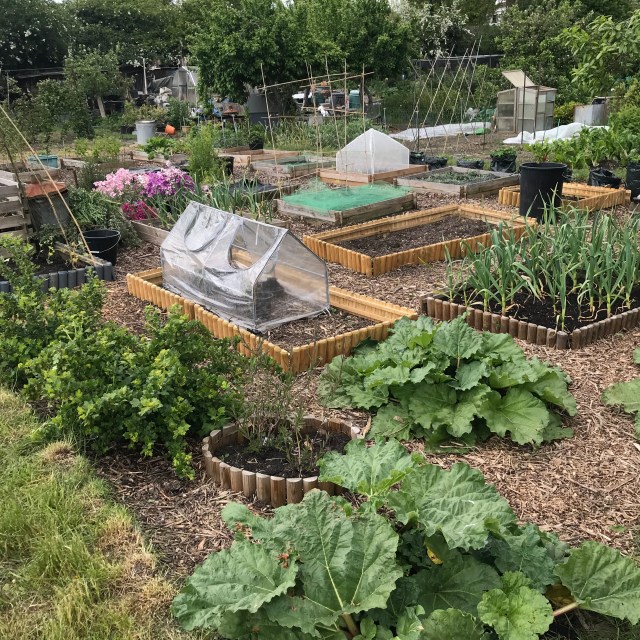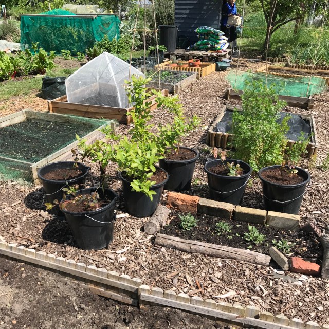 The potatoes are all doing well, as are the gooseberries, rhubarb, raspberries, blueberries and plum tree.