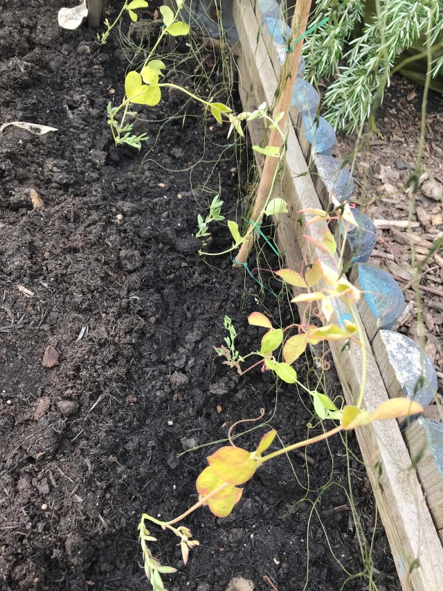 The garlic is strong but like all the other garlic on the site has rust. There isn’t really anything I can do, I’m feeding and watering it regularly and we just have to hope for the best! The broad beans have beans!