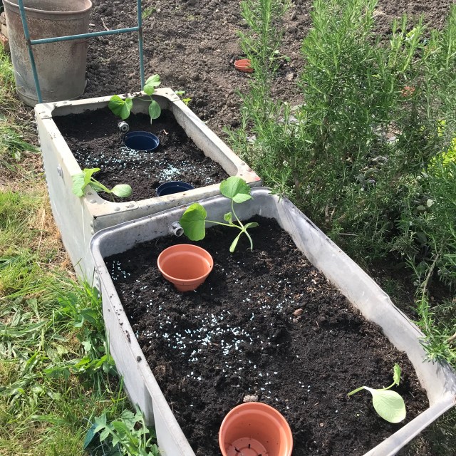 We also planted up the Uchiki Kuri, Butternut, Candy Roaster and Burgess Buttercup (in the three sisters bed). Then I noticed that one of the buttercups hadn’t make it and replaced with a spare uchiki kuri. Of course to get there, we had to dig up raspberries and fill the beds so it wasn’t as simple as it sounds.