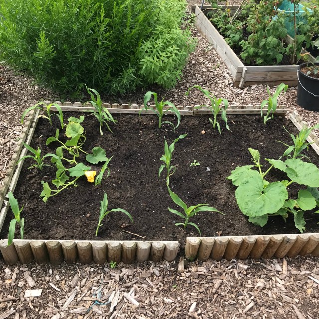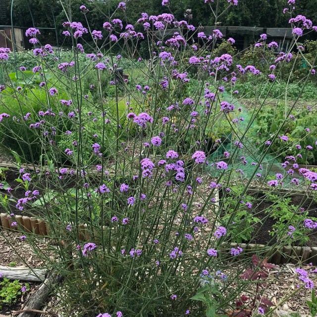 The three sisters bed has sweetcorn and squash plants but there are a couple of gaps (foxes!) so we’ll see how it goes, in a couple of weeks, I’ll sow the borlotti beans and we’ll just hope for the best. There was a lot of weeding and feeding to do but I’m really loving the flowers (the day lily and carnations are both out, as well as the verbena and lavender) and the allotment looking productive again. We have six beds currently empty but have plans to fill them with leeks, fruit, chard, kale, beetroot, fennel and pak choi.