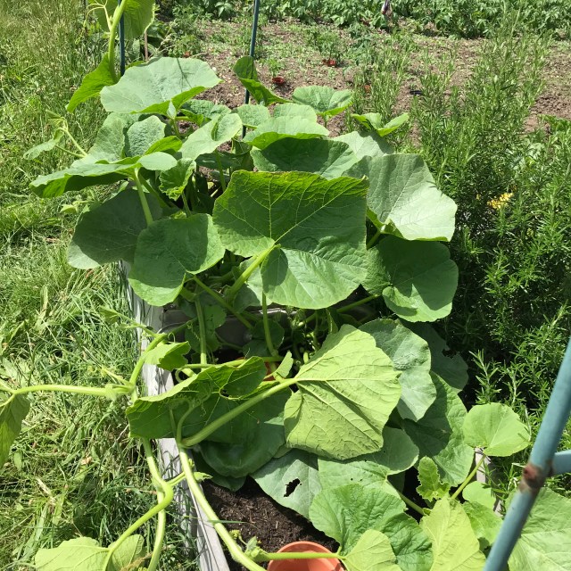 The uchiki kuri in the box obviously love their sheltered position and have gone mad and there is even a tiny squash ready to be fertilized, the other squash are growing but slowly.