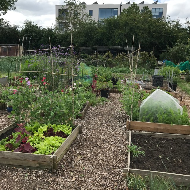 The salad is doing well (I cannot say the same of the spinach!) and on the carrot and the salad bed, the row of sweet peas were looking lovely. We seem to have more ladybirds on the plot (I brought one home on my face!) and that so far seems to have seen off the greenfly. The other bed of sweet peas is also blooming and the celery in that bed seems to be doing well too. The french beans are still little but alive so I’m calling that good.