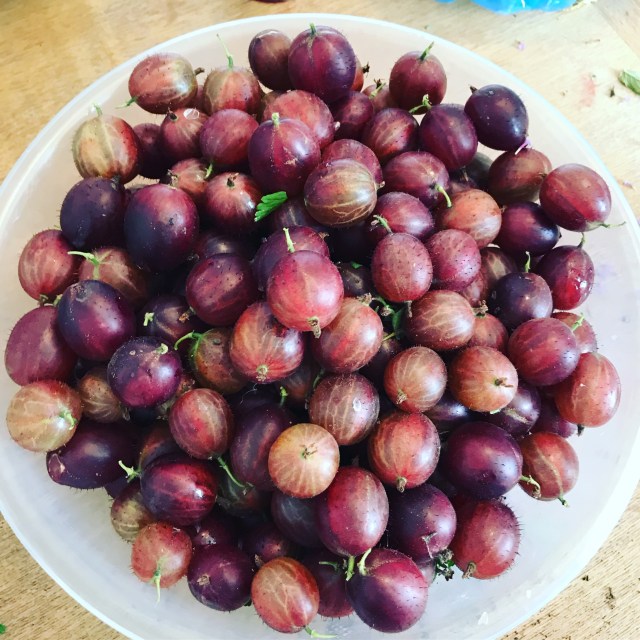 The summer raspberries probably had their time last week, and the autumn ones had a flush too but are also growing canes so I’ll expect them again in the next few months. The blueberries are all still alive and some are coming ripe. Five this week. This week’s soft fruit stars are the gooseberries, we picked nearly three kilos and there is more to come. They are eating gooseberries and so good, assuming I don’t eat them all straight from the bowl, I’m planning on at least one pot of jam and maybe some compote, some of them have already joined the raspberries in a granita.