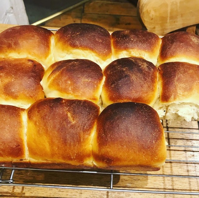 I made some bread rolls. I make these all the time, (usually halving the recipe because 24 is more rolls than one woman needs, using oil instead of butter and after I’ve mixed the ingredients together to form the dough, I don’t knead them, I try to avoid kneading at all costs!), this time I made them with honey instead of sugar and as a batch instead of separately. I like them this way, they are soft and seem to stay soft longer.