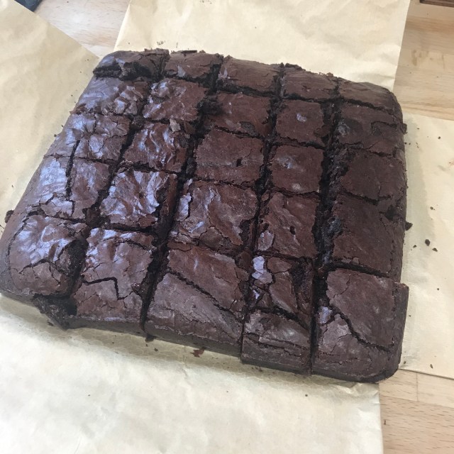 There has been some baking, these are the cocoa brownies from Smitten Kitchen and they are amazing and very simple, you can make them plain but if you have some dark chocolate or choc chips, you really should add them!