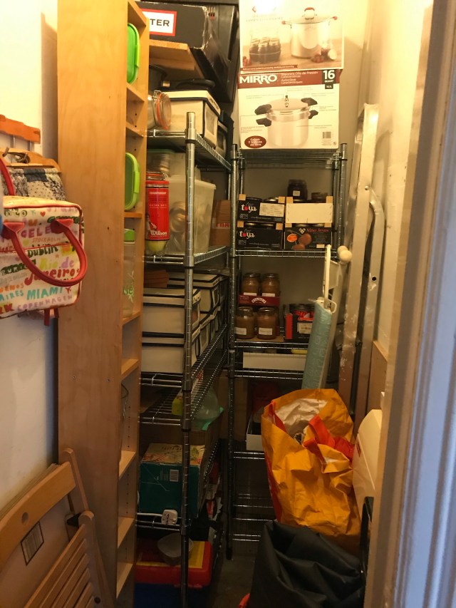 Also this year, I’ve been more aware of preserving the harvest from the plot and after the panic buying during March, I’m concerned about what Brexit is going to do to food supply and prices. So I needed to make some space for some longer term food storage because the white cupboard in the kitchen wasn’t big enough! All of this to explain that some changes need to be made in my living space.