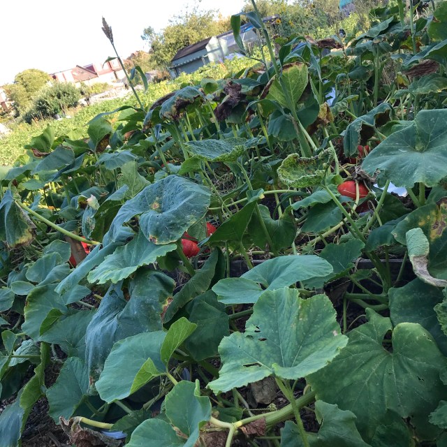 One of the interesting things about this allotment year is how willing we are to change stuff, the plans for next year involve moving beds about on the new half and after some discussion this year, dividing the squash beds. Ma finds these beds too wide to weed and I struggle. Bindweed is a real issue on the new half, sure we have it on the old half but only in patches and it is one of the reasons that we’re moving the gooseberries, but it’s everywhere in the new half (the paths, the gardens and all of the raised beds). We had a plan to raise the height of the beds this year, in the hope that the extra layer of compost would stop it coming up but we do need to get in and pull up the stuff that is persistent. For the paths, we’ll do what we did at the bottom, woodchip and weeding, it’ll be a bit more work because we don’t want to use weed fabric but it works and it helps condition the heavy clay soil.