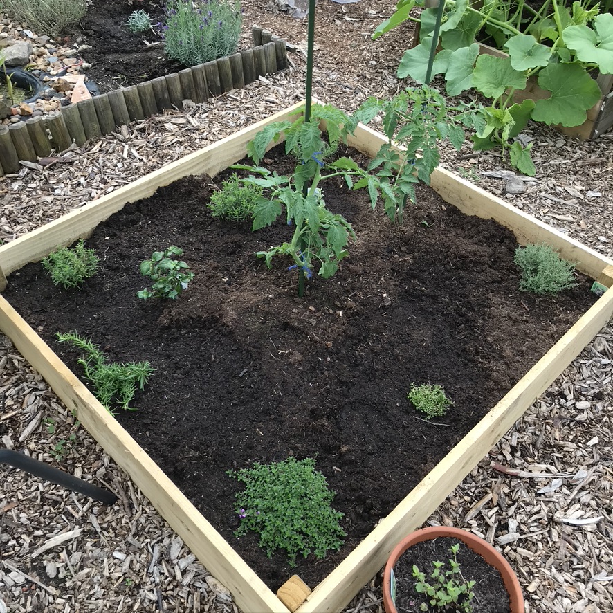 Kale, cabbages, cauliflowers, broccoli, leeks are all in. We’ve also added trailing rosemary, ruby glow thyme, hot and spicy oregano and a mushroom plant to the new herb bed. We’ve got chocolate mint, morrocan mint, corsican mint and ginger mint planted in pots and three new lavenders (all edelwiess which is a white lavender) planted up. Why yes, I did have an early birthday spree at Urban Herbs last week, what of it?