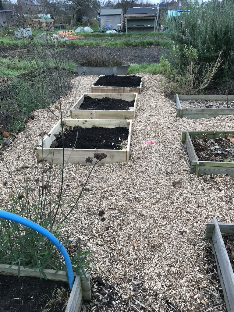- top up compost on beds that need it (all of them that aren’t actively growing anything!)