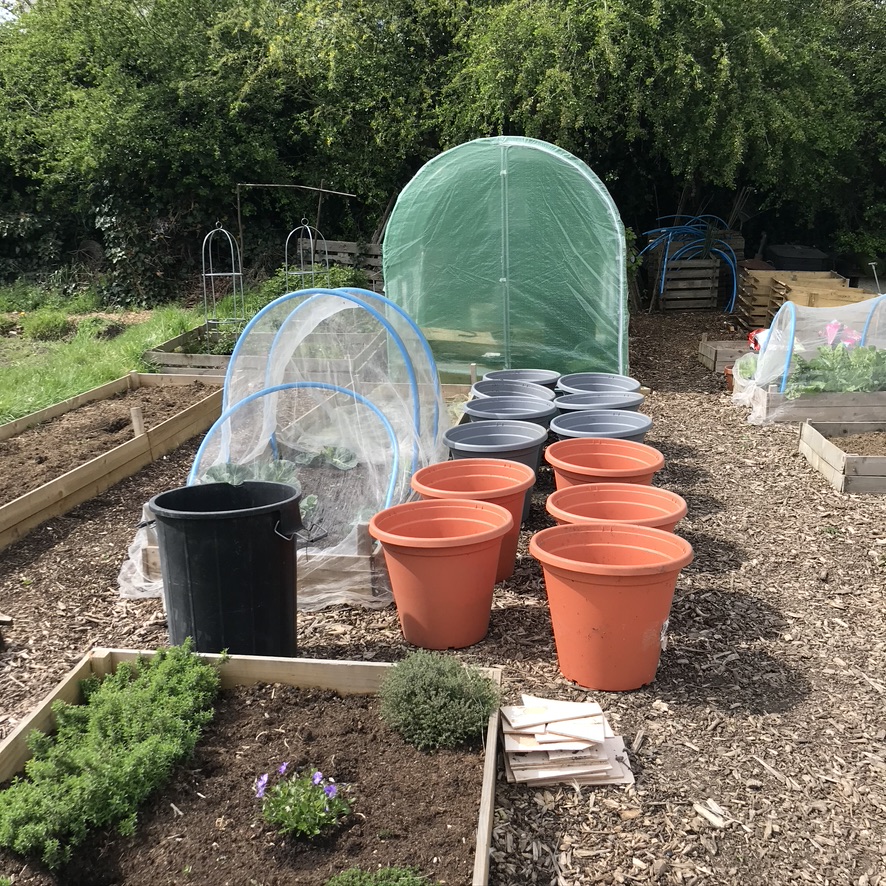 Then we planted the rest of the potatoes, we now have 12 pots, that is quite a few potatoes but seems to work for us.