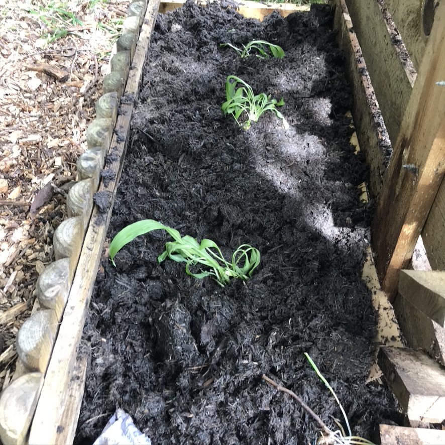 I planted the wild garlic at the back of the plot, I ended up making a very fast bed by the compost bin, they are quite shaded but that should work. I bought them from an instagram friend (Anjee) so I haven’t been raiding nature for them, but they should spread like weeds and if I’m going to have weeds, I want useful ones!