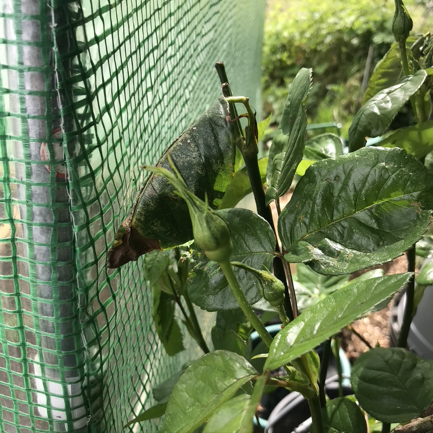 While I was doing that, I noticed that my favourite rose that I didn’t move or cut last year, was in bud and there were greenfly, so I gave that a spray.