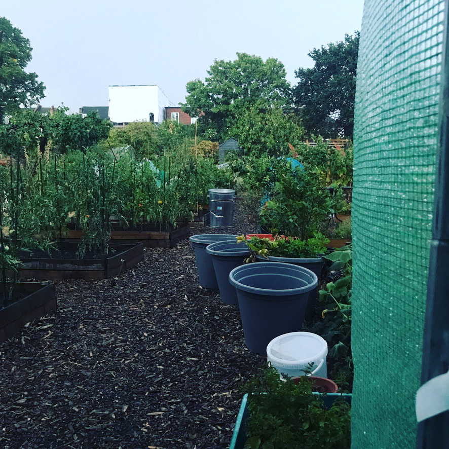 This weekend we will try to do more than water and harvest, I would really like to find the time to plant out the leeks and sow chard, turnips, pak choi and radishes. There was a massive pile of woodchip at the plot and if it’s still there, I’d like to collect some to re-up the paths, but the paths also need to be weeded, I have lots of cardboard but I’m not sure that this is the best course of action because it’s so dry. I also need to cut the grass on the paths down, generally tidy up and it’s probably time for another turn of the compost and to riddle the stuff that’s mostly broken down and has been sitting for a year.