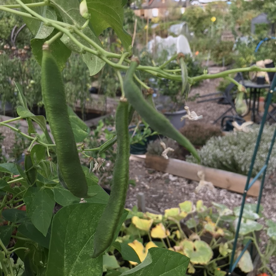 Outside, we’re not having the best squash year ever, the butternut squash have managed one fruit and overall it’s not going to be like 2020 when I think we managed 40, I’m going to need to amend the soil in the beds because everything seems to be struggling a bit. With the slightly cooler weather the beans we are growing for drying up the arches (lazy housewife and giantes) have recovered and there are beans. Which is good because the dwarf drying beans (Jacobs Cattle) have not done well at all. Ma and I have been discussing beans and next year, I’m only going to grow beans and peas (I want to try carlin peas and I think borlottis would also be a good shout!) for drying up the arches and dwarf beans will be for fresh eating only.