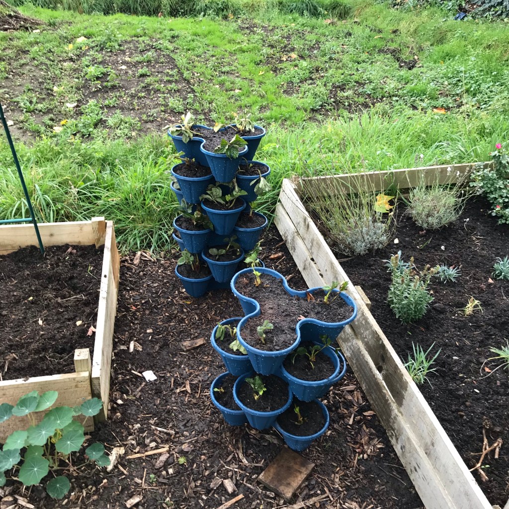 Surprising myself, on Sunday, I was back at the plot, to take decorations down, feed the birds and pot up more strawberries. I also got myself ready for being in the office today!