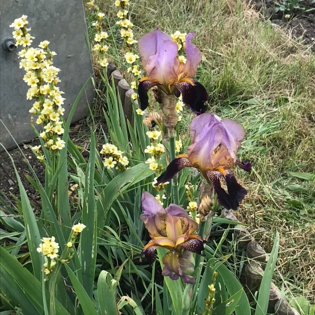 That’s the food side of the plot, the flowers did really well too. There were all the usual suspects, verbena, california poppies, calendula, borage, cornflowers, knautia and the bulb flowers (daffodils, narcissi, grape hyacinth, hyacinths, blubells, crocuses, irises and the alliums. The roses didn’t do so well but the peony and the bleeding hearts came back which I wasn’t convinced about. The flag irises finally blossomed too.