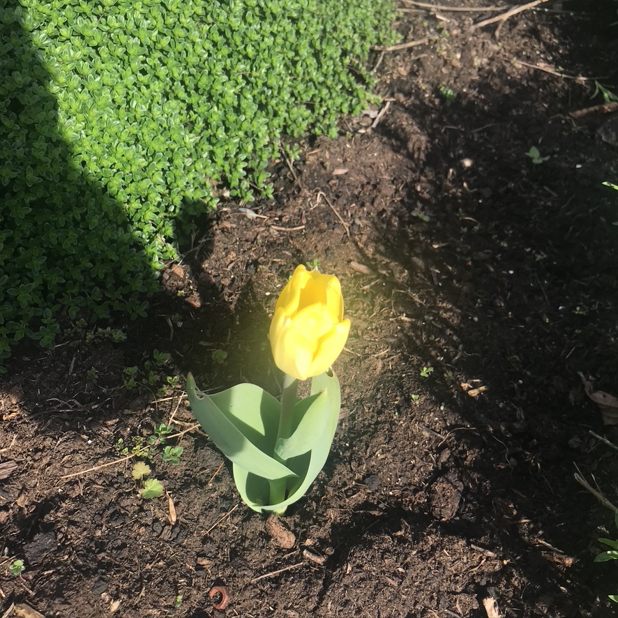 Surprisingly, I wasn’t done, I decided it was time to get the plants in pots at the back in the ground or in bigger pots. I transferred some hyacinths I got in the winter into the ground by the others at the corner of the pond area. I put a bronze fennel the rose garden, and the other in the ‘wild area’, which went in with the only that sweet pea that survived the winter!
