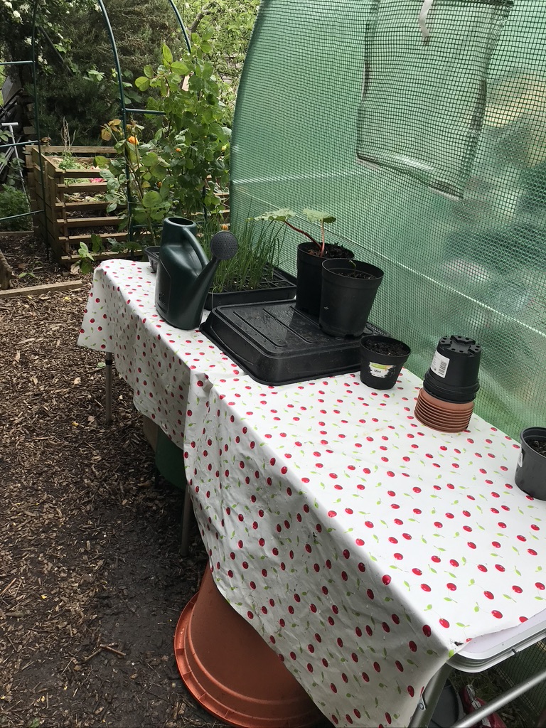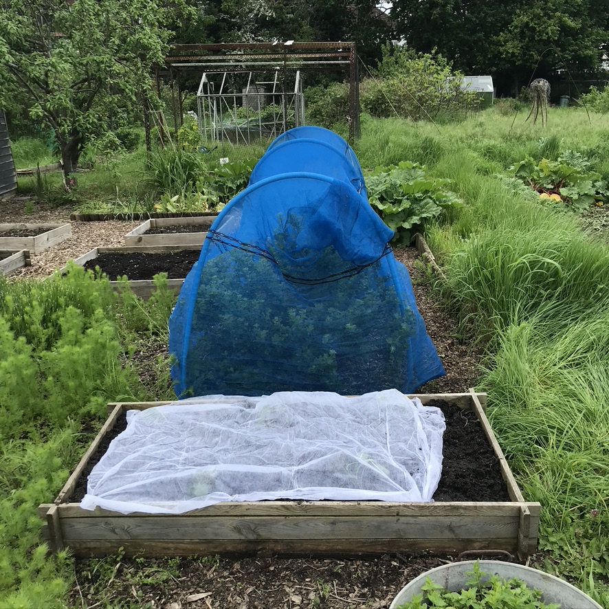 We set up the netting for the gooseberries and then I got sidetracked by the stated of the cane storage at the back of the plot (and I managed to bash myself in the face with some piping!)