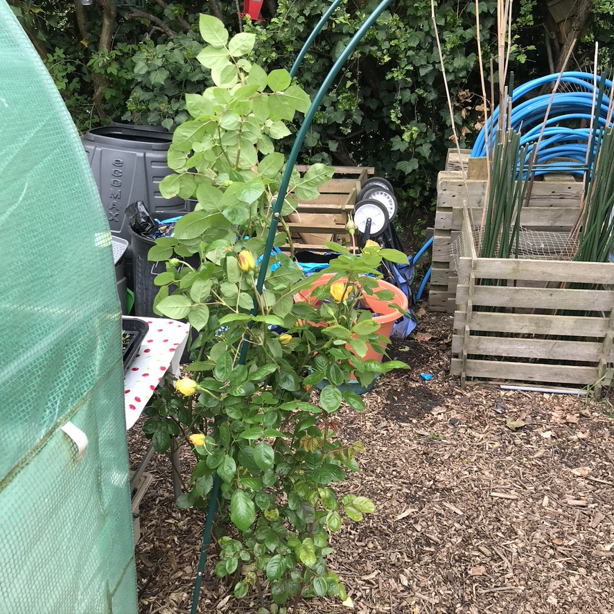 I put together an arch, to support my favourite rose bush, which is just about to burst into flower!