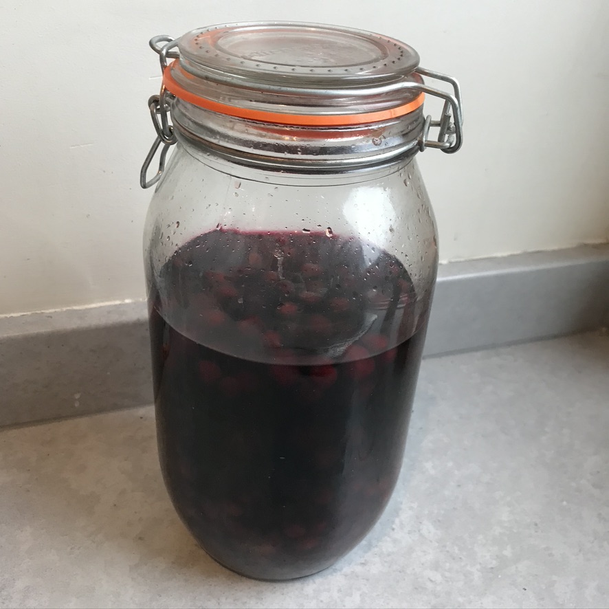 We had 800g of blackcurrants so adjusted the other ingredients accordingly. If you’ve been around here for a while or seen my other experiments in alcohol and fruit (here and here), you will know that while I have no opinions on brandy, I do have an opinion on the alcohol you should use when making fruit liquors.