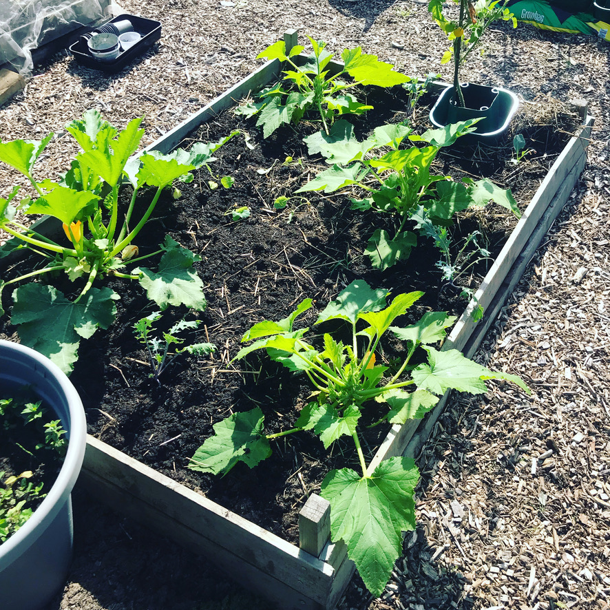 My goal for the allotment this week was to get food plants in the ground (I feel like I’ve been saying that for months now!). After watering, Ma started with cutting off the leaves on the summer squash at the front of the plot and clearing the french beans and I attended to planting.