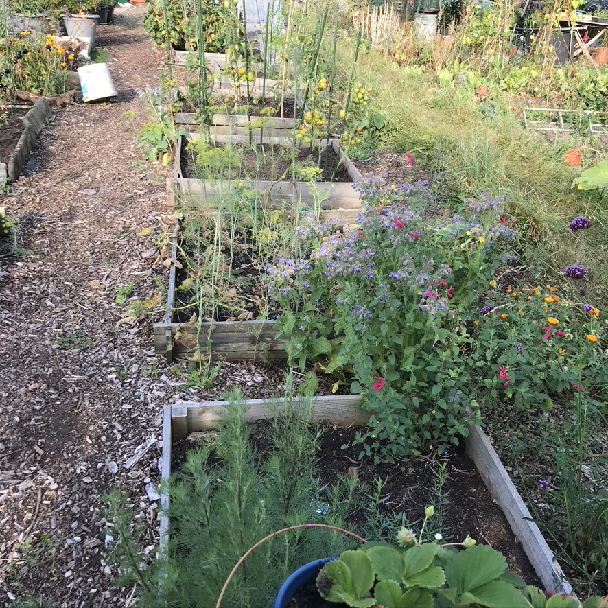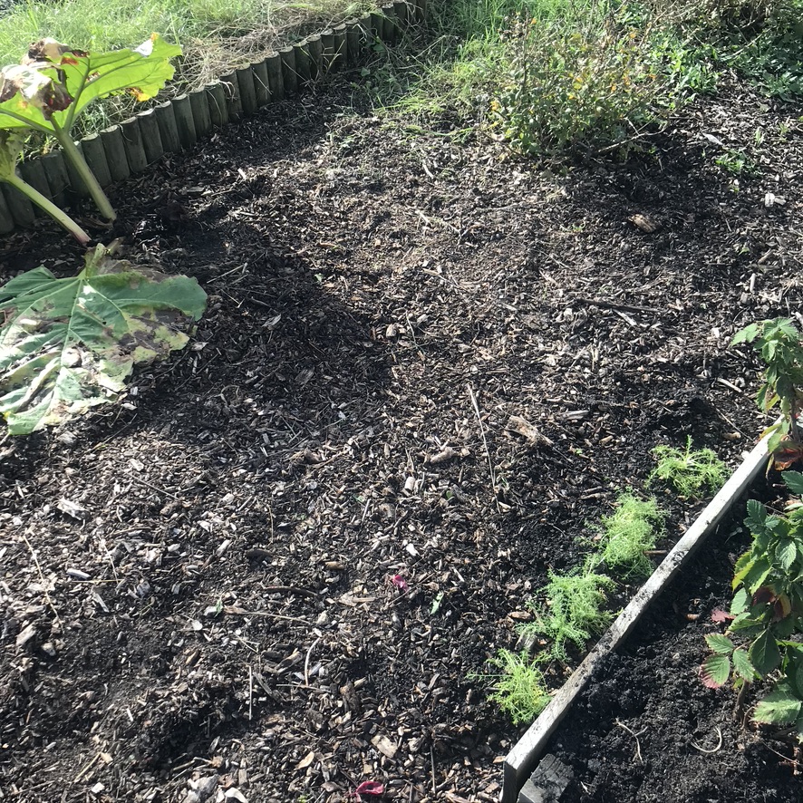 - Weed, clear and mulch the herb beds (that was the first bed I planted, rosemary, thyme, oregano and sage – there’s also a lemon verbena and some chives but there are also herbs everywhere on the plot!)