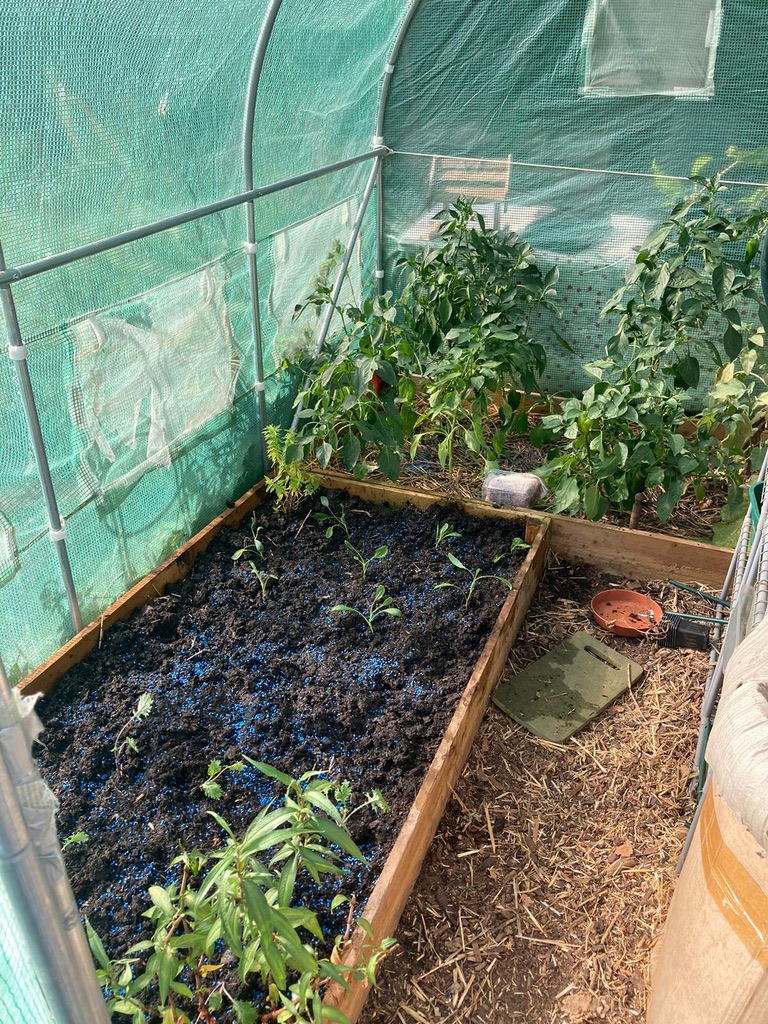 Last weekend, I was planning to pull up the peppers in the poly but they look really good so I’m going to give them a bit longer. My plan was to plant that bed up with lettuces, chard, mustards, rocket and so on, we’ll see if that happens!