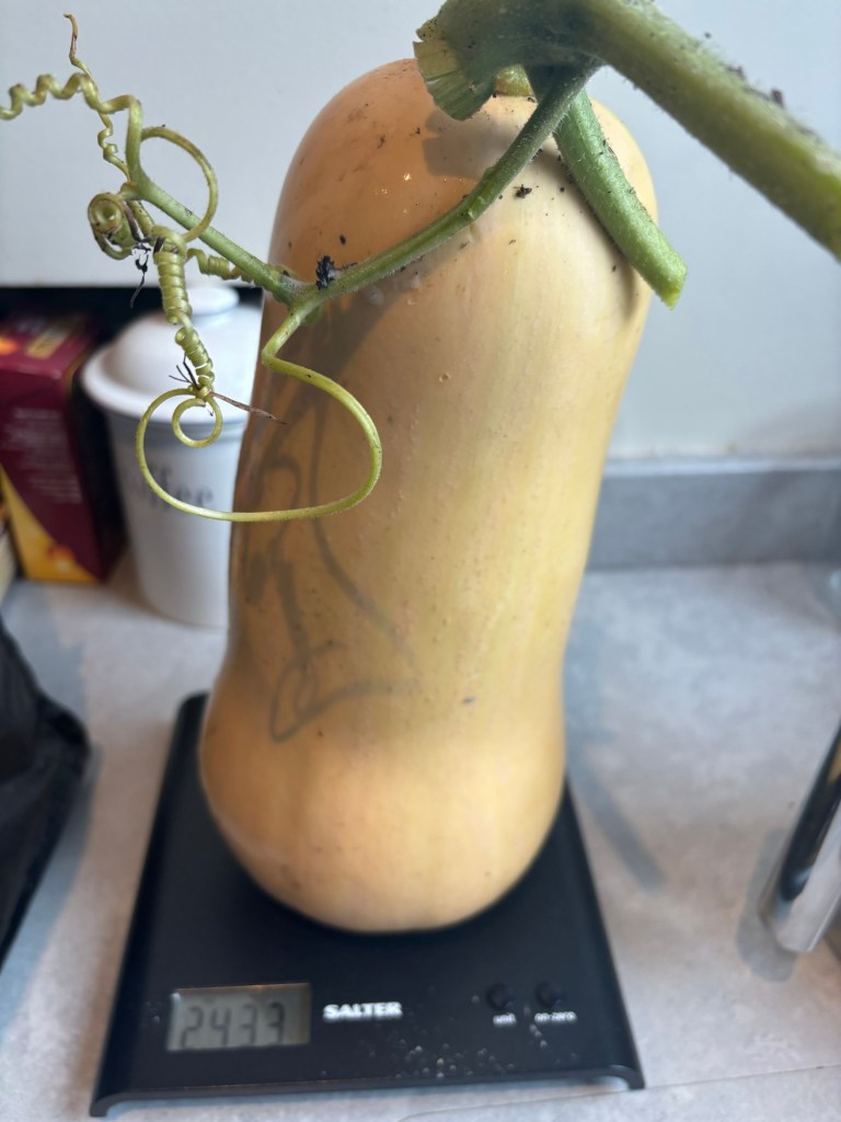 This week, there was one winter squash, two summer squash, purple sprouting broccoli, a few sweet potatoes, a cauliflower and tomatoes!