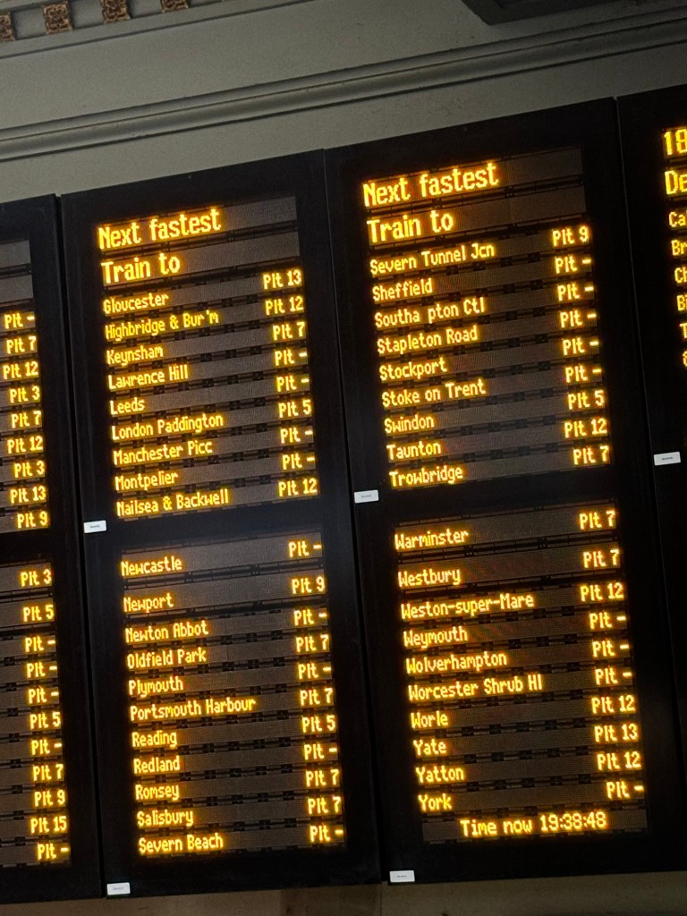 Storm Bert and the uselessness of GWR (God’s Worst Railway) put the kibosh on that. First all trains from Hereford Station were cancelled. But that was ok, Ryan dropped me at Newport because the trains were still running. The 18:33, except when I got to Newport, it had been cancelled. So I followed the advice and went to Bristol Temple Meads. Nope, all trains to London cancelled. Look, I get things happen, there was a storm, it was GWR’s complete lack of preparation or help that threw me. No one organising taxis or hotels. Nothing except a promise that GWR would pay for it!