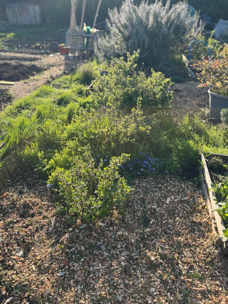 I’m still very behind but the front of the plot looks pretty good. I spent 4 hours and I didn’t plant or sow anything, I weeded and woodchipped some more.
