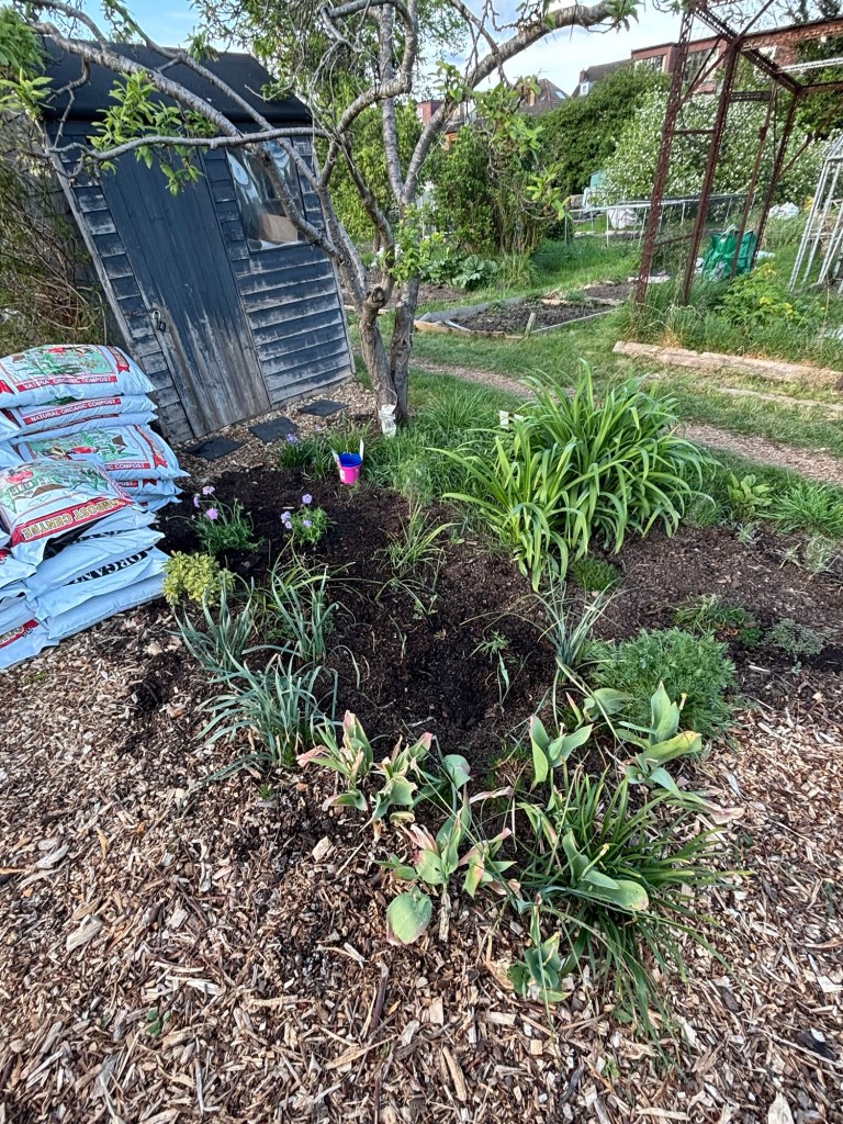 I’ve also weeded and topped up the asparagus and strawberry bed and in the compost order was some ericaceous soil so the blueberries have been weeded and new soil added.