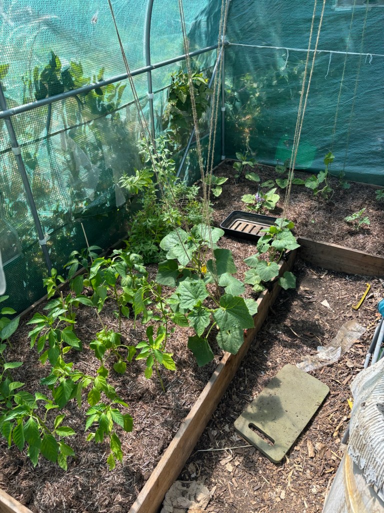 I also tied up and trimmed the existing tomatoes, harvested the first potatoes and courgettes, picked fruit, weeded the beds and potted on the basil, nine star broccoli, cottagers kale and physalis.